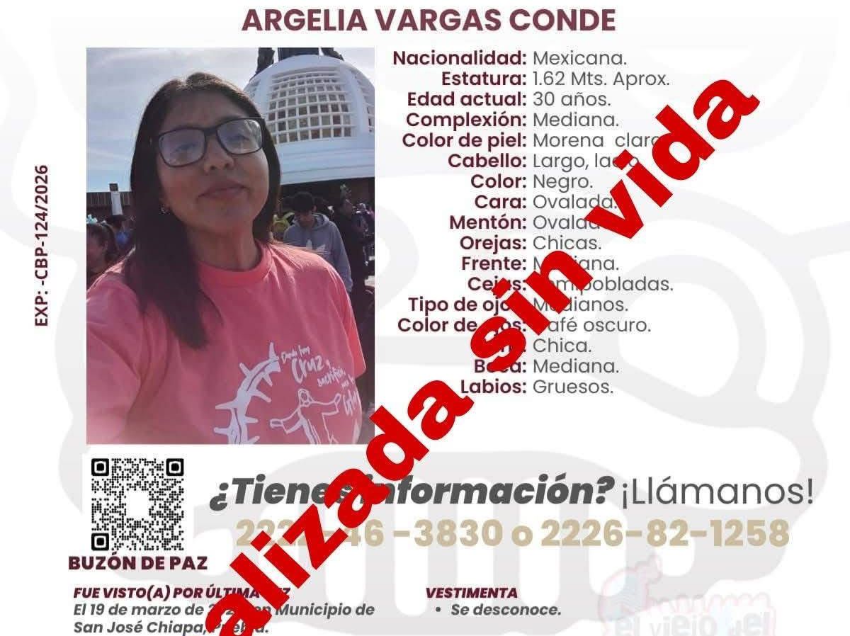 Una mujer fue localizada sin vida en el municipio de San José Chiapa. Se trata de Argelia Vargas Conde, de 30 años. Familiares reportaron a la joven catequista como no localizada desde el 19 de marzo. Autoridades hallaron su cuerpo el 21 de marzo en la comunidad Ojo de Agua,…