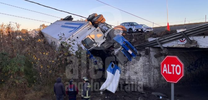 Conductor se queda dormido y vuelca tráiler en Ocotlán