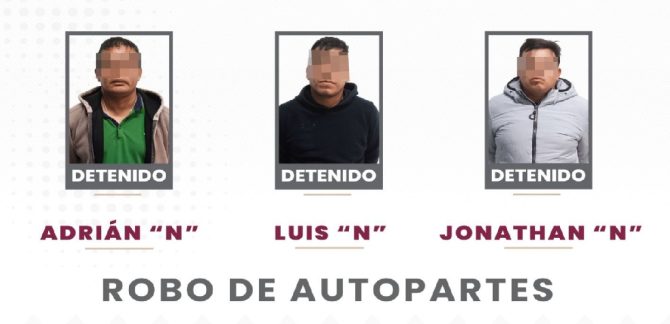 Detiene Policía de la Ciudad a tres presuntos responsables de robo de autopartes