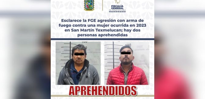 Como resultado de diversos actos de investigación, la Fiscalía General del Estado logró esclarecer un hecho ocurrido en el municipio de San Martín Texmelucan, en el que una mujer fue agredida con disparos de arma de fuego. Derivado de ello, fueron aprehendidos los probables responsables, identificados como Reyes N. y Marco Antonio N. Se sabe … Sigue leyendo Esclarece la FGE agresión con arma de fuego contra una mujer ocurrida en 2023 en San Martín Texmelucan; hay dos personas aprehendidas