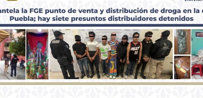 La Fiscalía General del Estado informa que derivado de labores de inteligencia, se logró el desmantelamiento de un punto de venta y distribución de droga, así como la detención de siete personas relacionadas con actividades de narcomenudeo. La acción operativa se originó a partir de una denuncia ciudadana que permitió obtener información relevante respecto a … Sigue leyendo Desmantela la FGE punto de distribución de droga en Puebla; hay siete detenidos