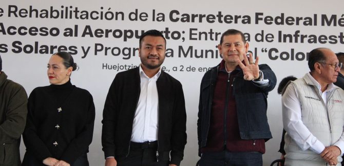 El Gobernador de Puebla, Alejandro Armenta Mier, y el Presidente Municipal de Huejotzingo, Roberto Solís Valles, dieron inicio a los trabajos de rehabilitación de la Carretera Federal México-Puebla, el Libramiento de la Cabecera y el acceso al Aeropuerto. Además, como parte de las acciones, entregaron calentadores solares, botes de pintura e infraestructura educativa a través … Sigue leyendo Alejandro Armenta y Roberto Solís da banderazo a obras de infraestructura vial, educativa y comunitaria