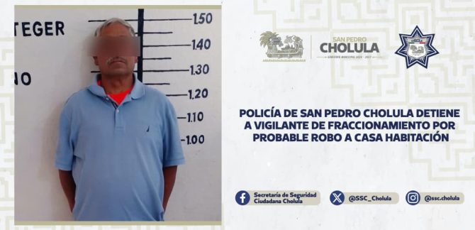 Detienen a vigilante por robo a casa habitación en Cholula