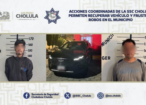 Acciones coordinadas de la SSC Cholula permiten recuperar vehículo y frustrar robos en el municipio